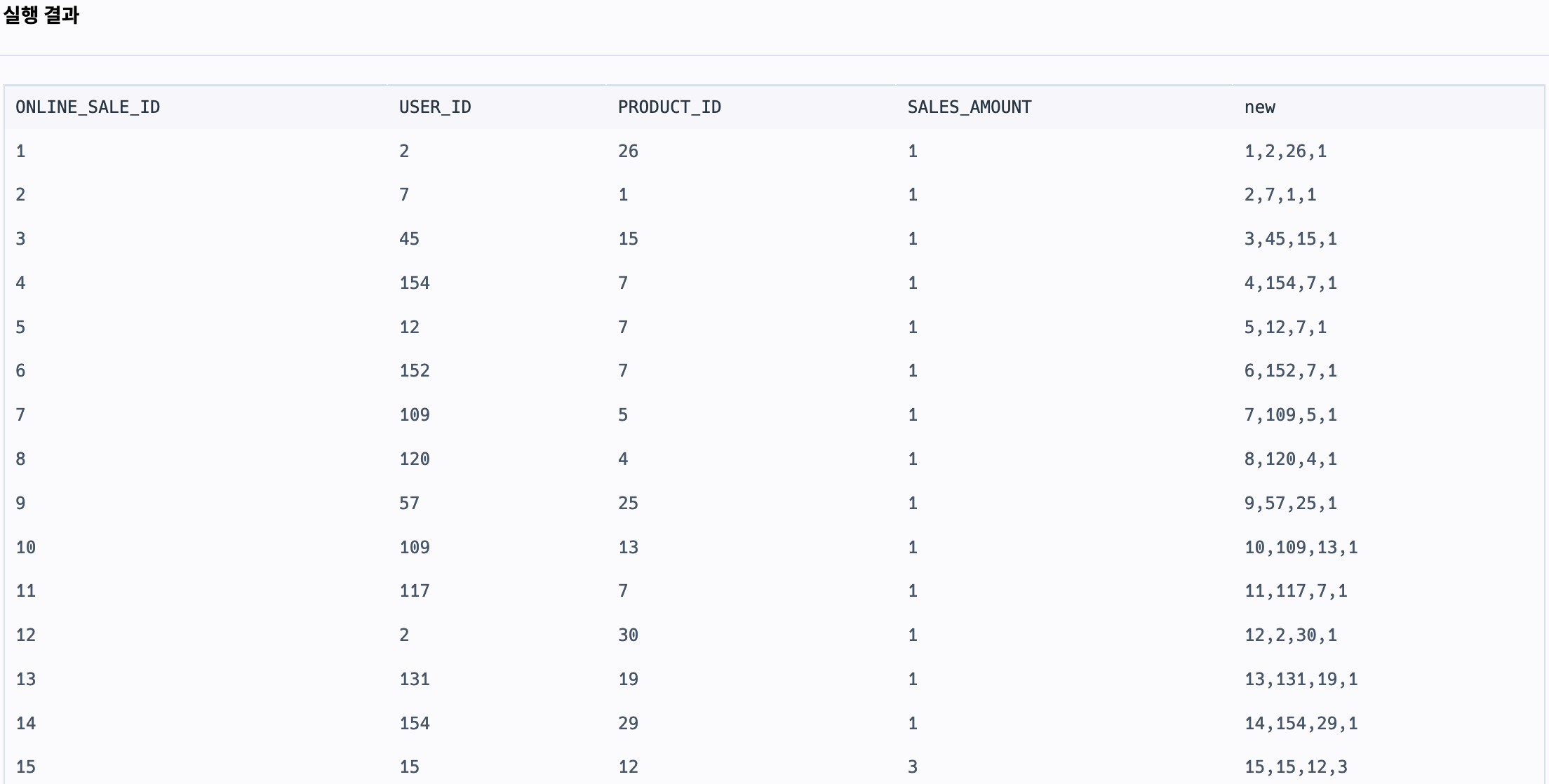 또 이 문제에서는 새롭게, 컬럼의 내용을 이어붙여야 하는 조건이 있었다.